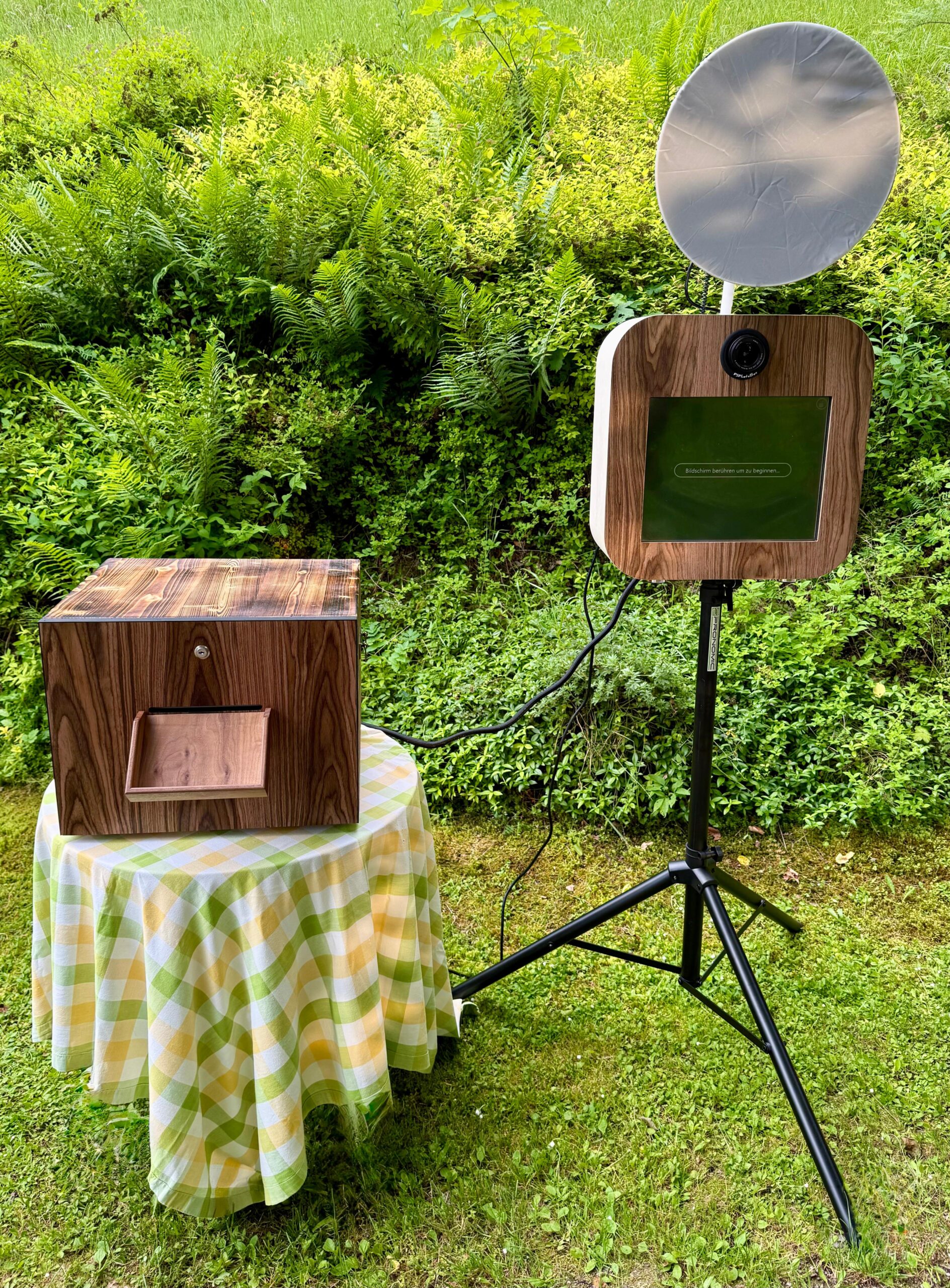 Mit der Fotobox sorgt ihr auf eurer Feier für unvergessliche Momente. Einfach bedienen, coole Requisiten nutzen und direkt vor Ort hochwertige Fotos drucken oder digital teilen. Ideal für Hochzeiten, Geburtstage, Firmenevents und mehr!